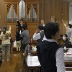 12月21日(日)の礼拝はクリスマス記念礼拝としてイースターに続いて成人礼拝の中でこども説教を「せかいのおうさま」と題して子供たちを前の席に移動して良き説教に大人も共に与りました。その後の成人説教では「神さまの計画、マリアの従順」と題してわたしたちでは計り知れない神さまのご計画を信じて素直に委ねて従う姿勢の良き説き明かしを頂き聖餐式にも与りました。礼拝後の愛餐会では、初めて4テーブルに分かれて皆さんとおいしい食事を共にして、ルーレットでテーマを(今年の感謝・一大ニュース・来年生抱負)選んで一人一人の証を頂けました。子供たちの可愛い賛美や大人たちのバンド(ケセラセラ)演奏、じゃんけんでプレゼントを競うなど楽しい時を過ごせました。初めて参加される方も与えられて、主の導きとお支えに感謝しています。