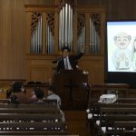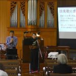 春日井教会で中部中会教会音楽講習会が開催されました。司会を木下裕也牧師(岐阜加納)に担って頂き、午前中は、関キリスト教会の二宮長老ご家族があらかじめ準備された一覧表から参加者の好きな賛美歌のリクエストを受けて、その賛美歌の背景を説明頂いて、共に賛美をして楽しく過ごせました。午後からは、パイプオルガン:有田知子先生(教団 名古屋教会)、リードオルガン:加藤千加子先生(改革派名古屋教会)により実技のレッスンを受けることができました。