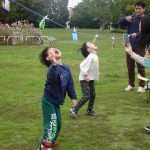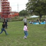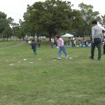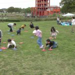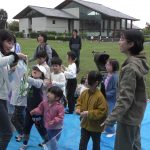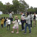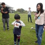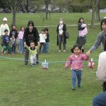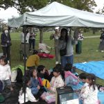 10月25日(土)に教会学校のみんなで落合公園に遠足に行きました。当日は雨が心配されましたが、神様が遠足の間の天候を守って下さって楽しく過ごせたことを感謝しています。まず芝生広場に集合して点呼を行い、オリエンテーションで1日の流れを説明しました。最初に「ふくいんのきしゃ」をみんなで賛美しながら歩きました。そのあとは「エビカニクス」で準備体操をしました。「赤青めくり競争」では小さなお友達も一生懸命に頑張れました。「ボール運びゲーム」では、ピンポン玉をしゃもじに乗せてリレーをしました。はじめての「絵合わせ借り物競争」では、1枚のカードを引いて、ペアとなる絵柄のカードを芝生に置いた絵から探すという少し難しゲームでしたが、数が少なくなるにつれて簡単になってきて小さなお友達も楽しめました。小さなお友達に向けたパンくい競争ならぬ「お菓子とり競争」では好きなお菓子を狙って頑張れました。大人は素敵なパンを競争して取れました。一緒に昼食を取ってからは、ドングリ拾い用の袋にシールを貼る工作ををして、ドングリ拾いに行きました。最後には今年のクリスマス会の案内をして1日が楽しく過ごせました。神さまが豊かな時を与えて下さったことに心から感謝しています。